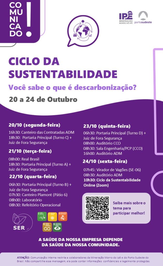 Ciclo da Sustentabilidade – 20 a 24 de Outubro – Participe! outubro 16, 2025outubro 15, 2025 Por adminpedro Cliquei aqui e saiba mais: https://www.portosudeste.com/nossa-jornada-de-descarbonizacao 0Curtir Você também vai gostar Ciclo de Diálogo Social Porto Sudeste – 6 a 10 de novembro – Participe! Ciclo da Sustentabilidade – 15 a 19 de julho – Participe! Ciclo de Diálogos Sociais: de 22 a 30 de abril – Participe!