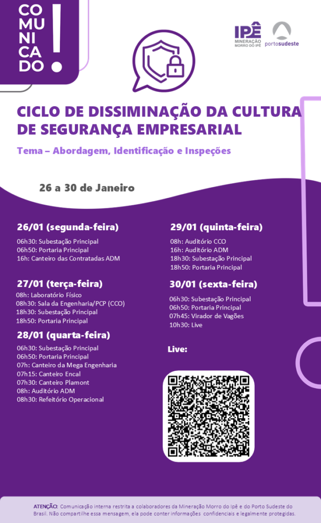 6 comentários em “Ciclo de Disseminação da Cultura de Segurança Empresarial – 26 a 30 de Janeiro – Participe!”